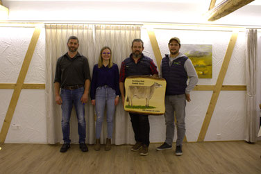 Präsident Roman Auer (links) mit der Schausekretärin Valeria Huber, Dominik Durrer abtretendes Vorstandsmitglied 2024 und seinem Nachfolger Christian Gisler.